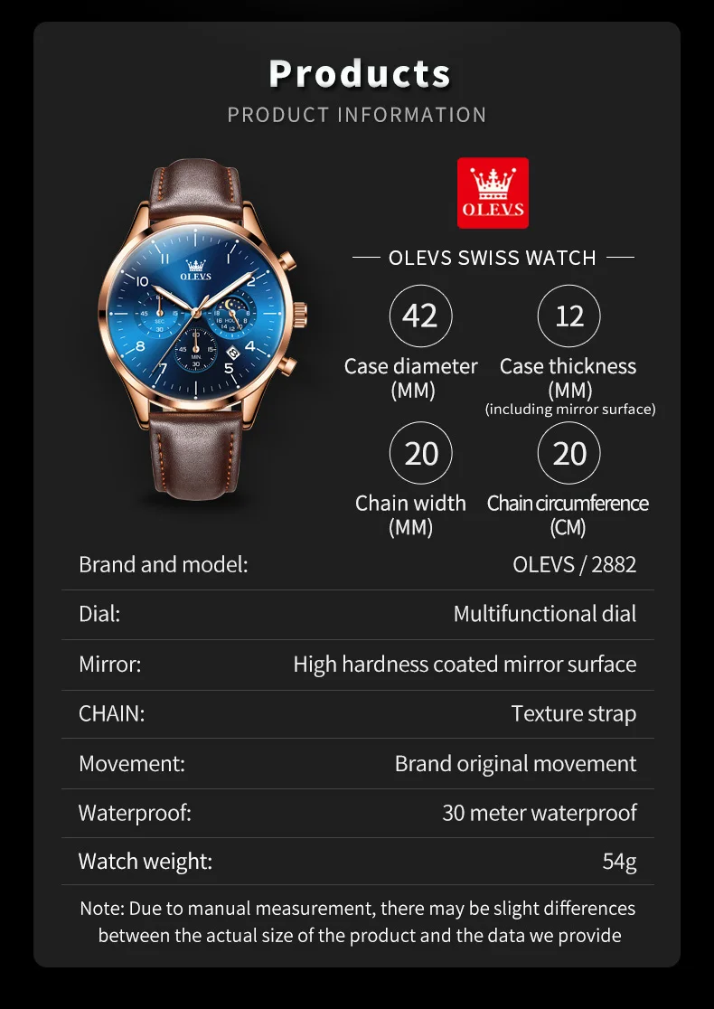 OLEVS 2882 Men’s Watch – Classic Multi-Function Quartz Timepiece
